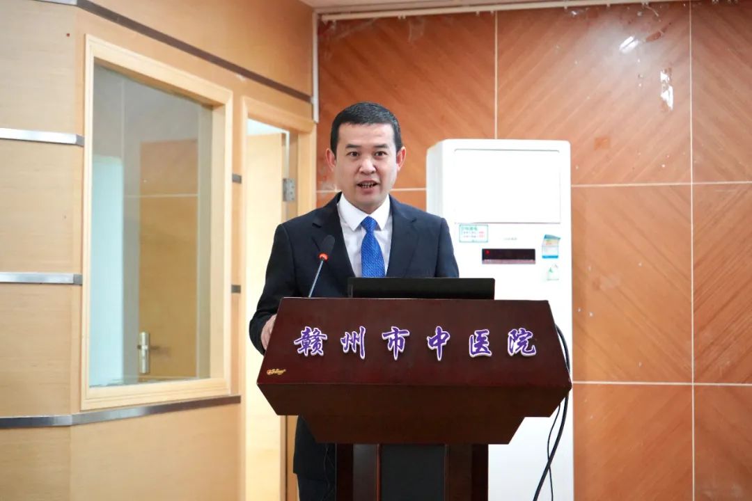 贛州市肛腸病診療質(zhì)量控制中心主任、市中醫(yī)院副院長(zhǎng)黃德榮講話。